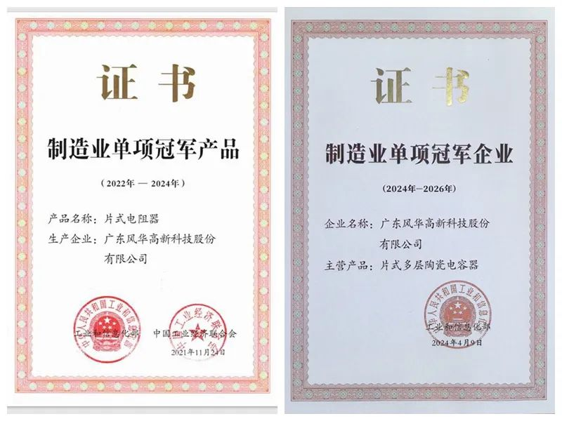 ▲風華高科獲評國家級制造業(yè)單項冠軍企業(yè)和產(chǎn)品